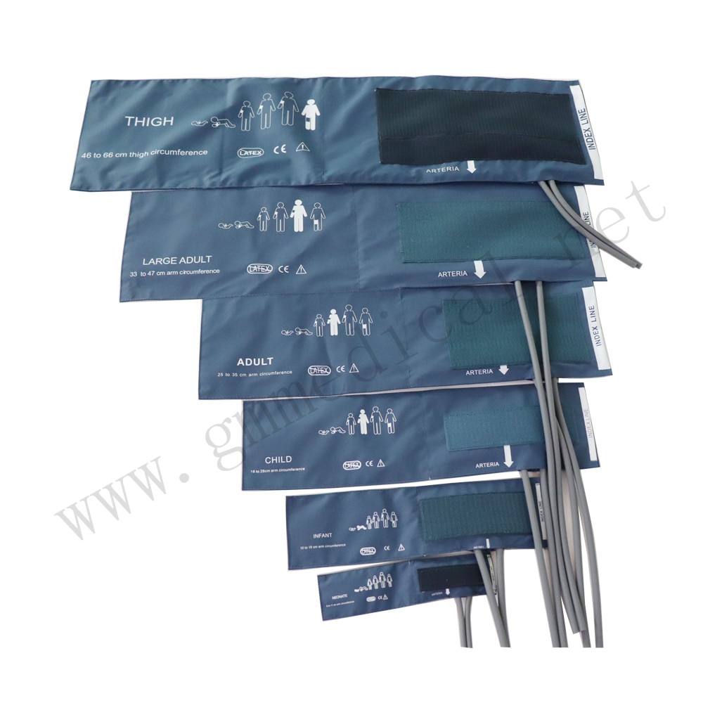 CF001F-B: Pulzier NIBP ta 'tubu doppju artab neonat, Ċirkonferenza tad-driegħ ta' 6-11cm, Blu