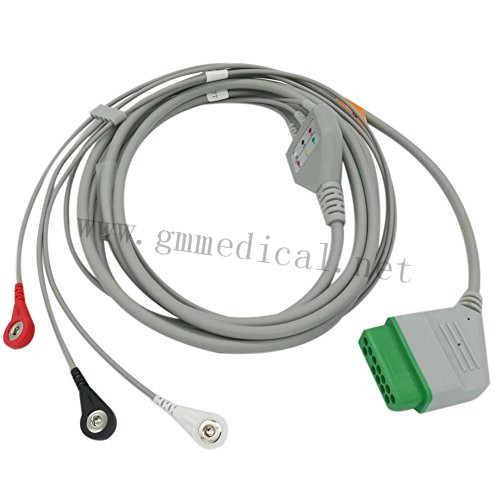 3-Lead ECG Cable b'Wires Lead Kompatibbli Nihon Kohden, 12 Pin