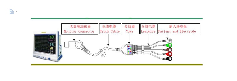 Qabbad il-wrie taċ-ċomb tal-ECG mal-monitor tal-pazjent adattiv u iċċekkja jekk l-operazzjoni hix l-istess bħall-istruzzjonijiet tal-operazzjoni tal-manwal tat-tħaddim. L-elettrodu tal-ECG tal-wajer taċ-ċomb għandu jkun imqabbad fuq il-pazjent fl-ordni, il-wajer taċ-ċomb għandu jkun imqabbad separatament biex jiġi evitat li jidħlu, inkella jista 'jikkawża interferenza waqt il-monitoraġġ, bħal ċaqliq tar-rata tal-qalb, varjazzjoni tal-forma tal-mewġ eċċ.