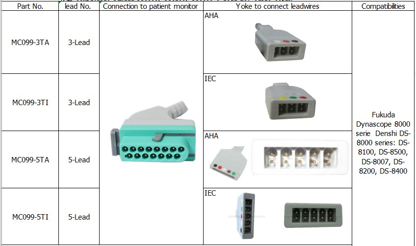 Fukuda kompatibbli DS8100, DS8200, DS8500 3-lead ECG cable 15pin