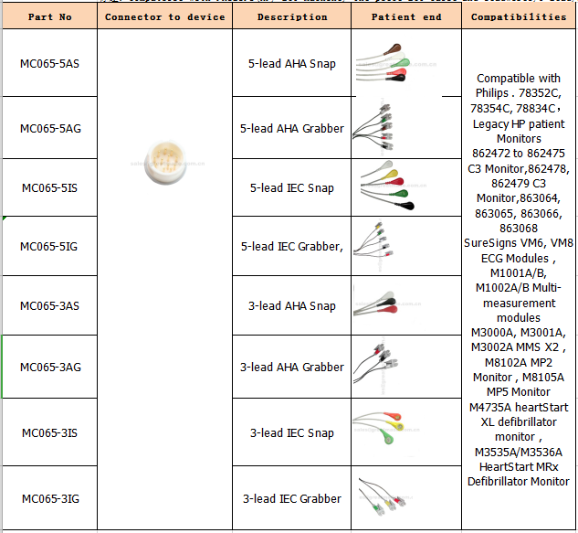 "Kompatibbli ma 'Philips. 78352C, 78354C, 78834C , Monitors tal-pazjent HP Legacy 862472 sa 862475 C3 Monitor, 862478, Moniter 862479 C3, 863064, 863065, 863066, 863068 SureSigns VM6, Moduli ECG VM8, M1001A / B, M1002A / B, M1002A / B, M1002A / B Moduli ta ’kejl M3000A, M3001A, M3002A MMS X2, M8102A MP2 Monitor, M8105A MP5 Monitor M4735A heartStart XL monitor defibrillator, M3535A / M3536A HeartStart MRx Defibrillator Monitor"