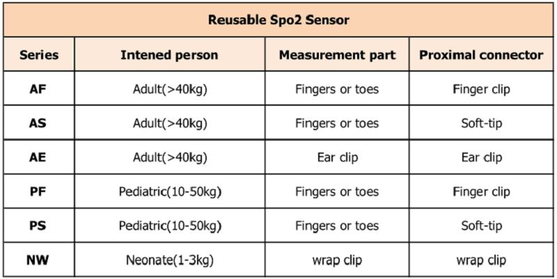 (Serje PF&PS) Is-senser spo2 li jista 'jerġa' jintuża huwa konness mal-oximeter tal-polz kompatibbli għal monitoraġġ kontinwu u mhux invażiv tas-saturazzjoni funzjonali ta 'ossiġenu ta' emoglobina arterjali (SpO2) u rata tal-polz (PR) għal pazjenti pedjatriċi li jiżnu 10-50kg